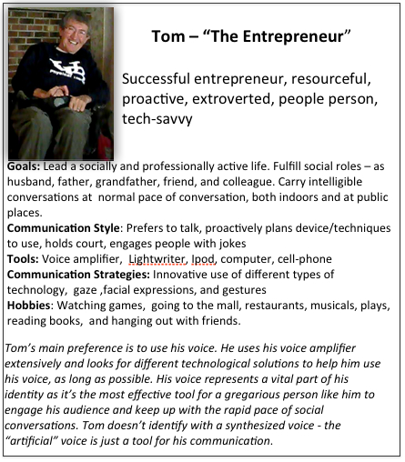 We are in the process of developing user personas to share with industry and study their utility for improving AAC assessment and clinical education.